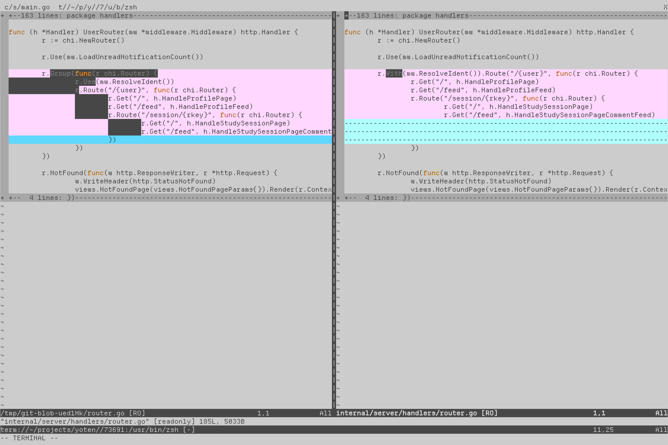 Your coworker has just finished some chunk of work and they've chosen you to be their stamp of approval. Your first instinct may be to go to GitHub to review these changes. But, with the recent enshittification GitHub has been going through, you're reluctant. You don't want another reason to have to leave your safe place - the terminal.